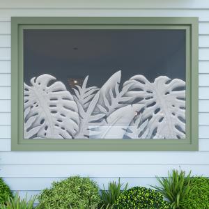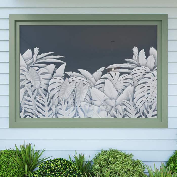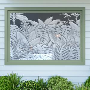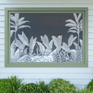 Add an aesthetic touch and varying degrees of privacy to your glass windows and doors with Kaholo’s tropical designs. Get the look of real sand-blasted or acid-etched glass at a fraction of the cost! While our product looks like the real thing, it’s ecologically safer and cleaner than sand-blasting and acid-etching, and it’s replaceable because it doesn’t permanently damage the surface of your glass (does not permanently mar the glass).