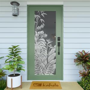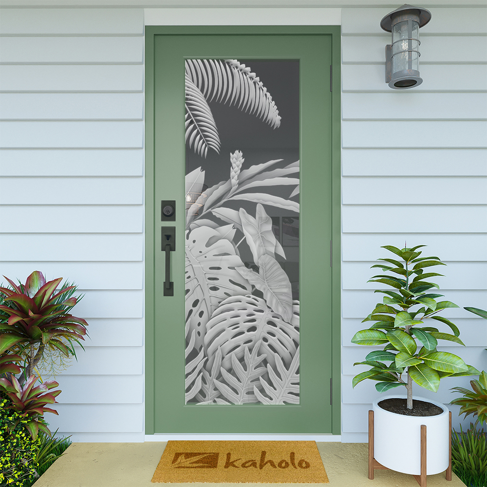 Kaholo’s DIY designs are created using the window film industry’s best, most durable window film materials, designed by experienced artists and manufactured with the latest large format printers. The level of detail halftones and gradient shading is clearly represented in every piece of art and seldom found in the industry. Perfect on any door, kitchen cabinet, sidelight, picture window, pantry door, shower door, bathroom mirror and more – get creative! Get tropical! Get Kaholo Glass Art!