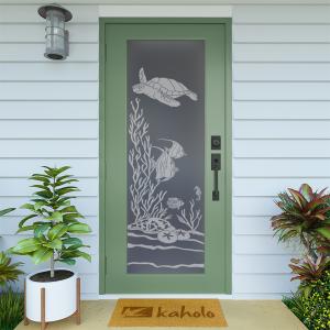 Add differing levels of privacy, aquatic or ocean styling and aesthetics to any window or door with Kaholo’s 3D Land and Sea Designs. Get the look of real sand-blasted or acid-etched glass at a fraction of the cost! While our product looks like the real thing, it’s ecologically safer and cleaner than sand-blasting and acid-etching, and it’s replaceable because it doesn’t permanently damage the surface of your glass (does not permanently mar the glass).