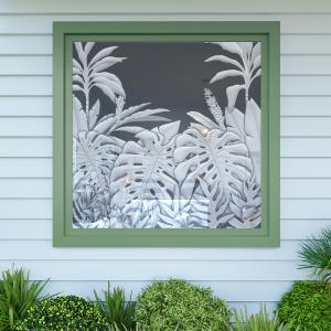 Add an aesthetic touch and varying degrees of privacy to your glass windows and doors with Kaholo’s tropical designs. Get the look of real sand-blasted or acid-etched glass at a fraction of the cost! While our product looks like the real thing, it’s ecologically safer and cleaner than sand-blasting and acid-etching, and it’s replaceable because it doesn’t permanently damage the surface of your glass (does not permanently mar the glass).