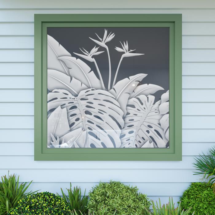 Kaholo’s DIY designs are created using the window film industry’s best, most durable window film materials, designed by experienced artists and manufactured with the latest large format printers. The level of detail halftones and gradient shading is clearly represented in every piece of art and seldom found in the industry. Perfect on any door, kitchen cabinet, sidelight, picture window, pantry door, shower door, bathroom mirror and more – get creative! Get tropical! Get Kaholo Glass Art!