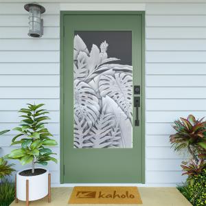 Add an aesthetic touch and varying degrees of privacy to your glass windows and doors with Kaholo’s tropical designs. Get the look of real sand-blasted or acid-etched glass at a fraction of the cost! While our product looks like the real thing, it’s ecologically safer and cleaner than sand-blasting and acid-etching, and it’s replaceable because it doesn’t permanently damage the surface of your glass (does not permanently mar the glass).