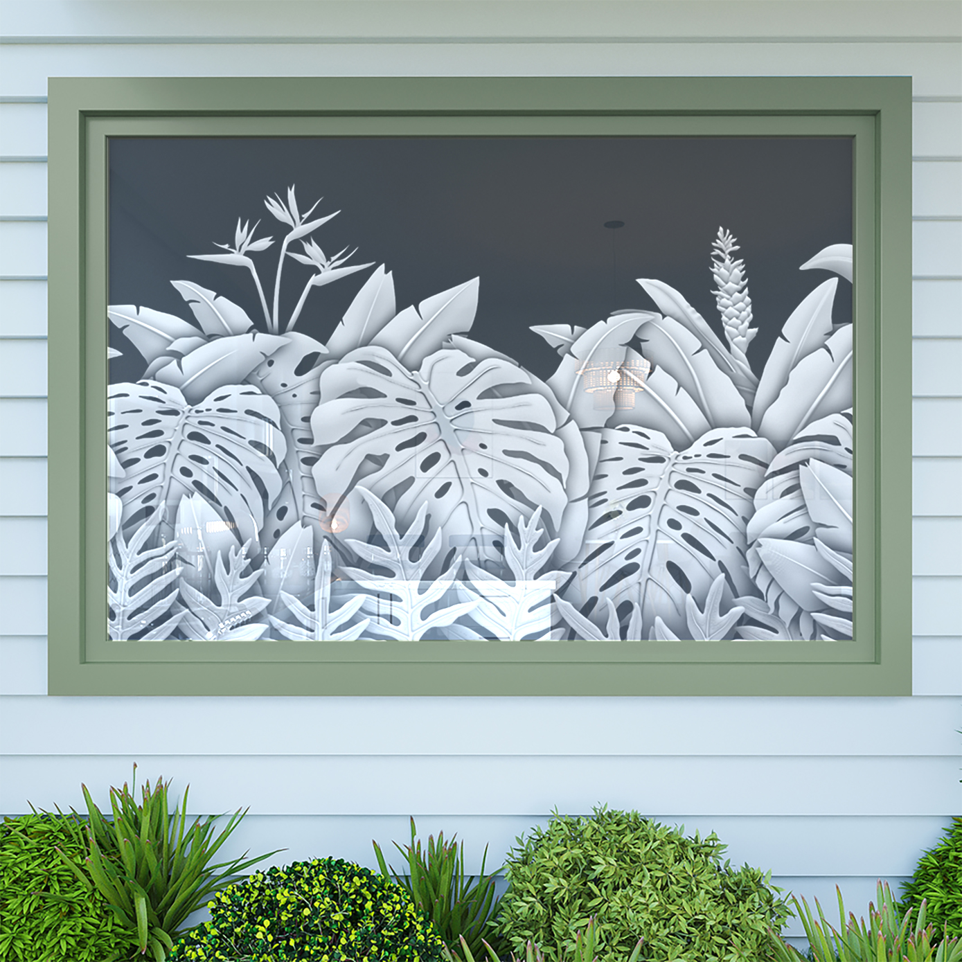 ** Our graphics should be installed inside your home, examples are shown from the outside of the building in order to show how the art will look during the daytime.