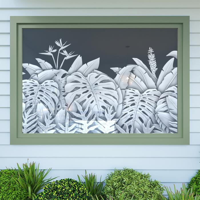Add an aesthetic touch and varying degrees of privacy to your glass windows and doors with Kaholo’s tropical designs. Get the look of real sand-blasted or acid-etched glass at a fraction of the cost! While our product looks like the real thing, it’s ecologically safer and cleaner than sand-blasting and acid-etching, and it’s replaceable because it doesn’t permanently damage the surface of your glass (does not permanently mar the glass).